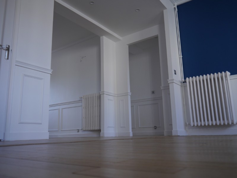 Nous avons réalisé le ponçage et la vitrification de l'ensemble du parquet de cette appartement.